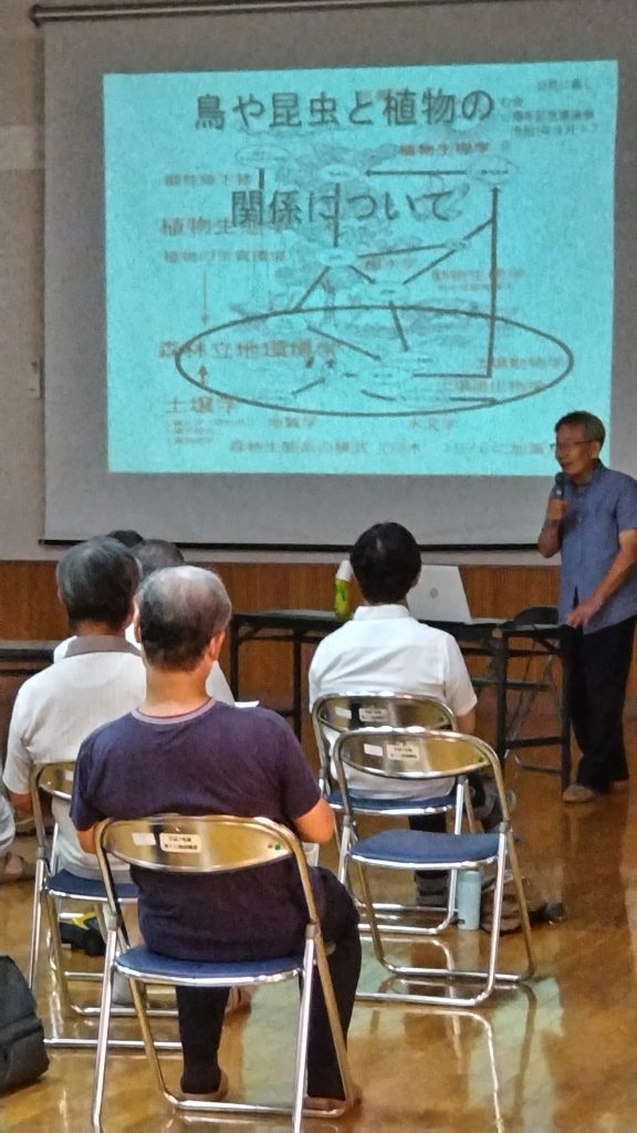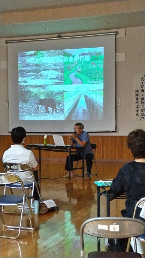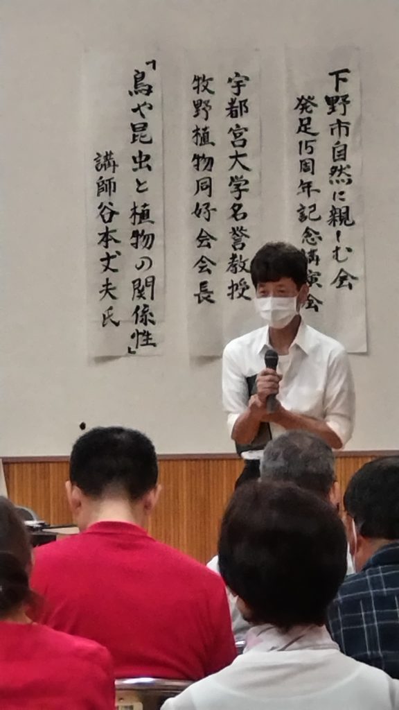 9月17日(日)グリーンタウンコミュニティーセンターにおいて、自然に親しむ会の15周年記念イベントを開催しました。記念講演として、現在テレビ放映中の朝ドラ「らんまん」の主人公牧野富太郎博士が設立した牧野植物同好会会長、谷本丈夫氏を招き「鳥や昆虫と植物の関係性」をテーマにお話しして頂きました。約50名の参加者は興味深く聞き入っていました。図鑑よりも、本物を見て触って感じることが何よりも素晴らしいことであると言われ、これからの私たちの活動に活かしつつ、長く続けて行けるようにと考える機会となりました。