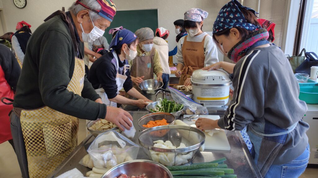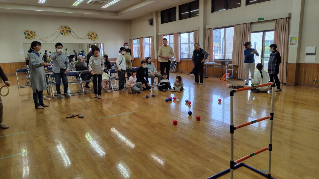 下野市自然に親しむ会は、11月30日(日)、グリーンタウンコミュニティセンターにて「ワイワイわくわく交流会」を開催しました。この交流会は、ふだんはそれぞれの部会で活動している会員が一堂に集まり、仲間同士のつながりを深めることを願って企画されたものです。当日は32名の会員が参加し、豚汁やお団子、おにぎりなどをみんなで作り、各部会の楽しい活動報告に耳を傾けながら、和やかな雰囲気の中で食事を楽しみました。食後にはチームに分かれて、ボッチャや輪投げ、ラダーゲッター、足算ゲームなどに挑戦し、大人も子どもも一緒になって盛り上がりました。家族連れの参加も多く、ホールには笑い声が響き渡り、心温まる交流のひとときを過ごすことができました。